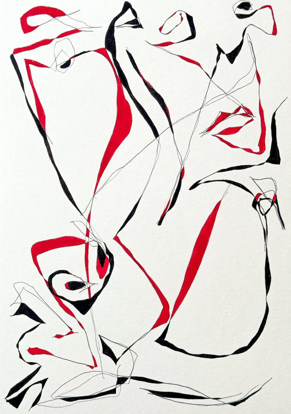 ‘Complications’ captures the emotional rhythms of daily life through abstract line drawings. Inspired by everyday objects, food, and universal emotions like happiness and sadness, I explore the complexities and fleeting moments that shape our experiences. This series is a reflection of our resilience and the struggles we face daily.