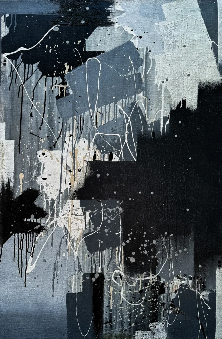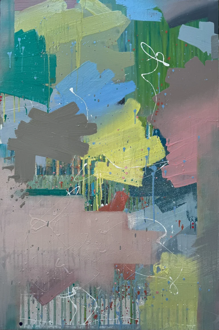 EVIANA GEROUSI, a Greek artist born in Belgium, spent her formative years in Dubai and currently resides and works in London as an abstract painter. Eviana earned her BA in Fine Art: Painting from the University of the Arts London and is now pursuing a Master of Fine Arts in the Arts and Humanities at the Royal College of Art.