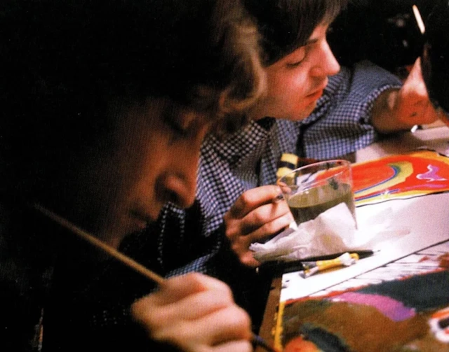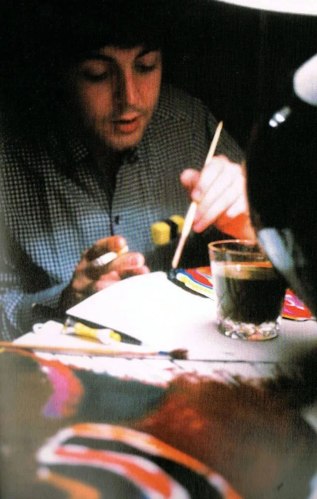 Luckily for us Beatles fans, their friend the photographer Robert Whitaker was traveling with them on tour and managed to take many photographs of them working on the painting. In fact, he recalled that they were at the most relaxed and happy when working on it, and were always keen to get back to the hotel room to work on it after giving their concerts at the Budokan. “I never saw them calmer, more contented than at this time… They’d stop, go and do a concert, and then it was ‘Let’s go back to the picture!’”